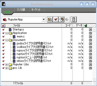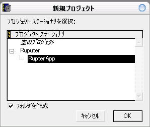 CodeWarriorのIDEを起動し、メニューから、ファイル→新規プロジェクトを選び、新規プロジェクト作成のダイアログで、RuputerAppを選びます。