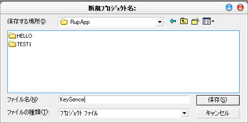 すると、プロジェクト名を入力するダイアログが開きますが、このダイアログはフォルダを選択するダイアログになっていますので、まず保存したいフォルダを選択し、その後下部にあるファイル名の欄にプロジェクト名を入れます。