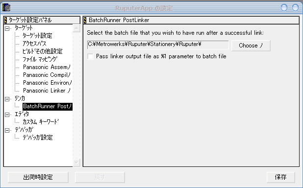 ターゲット名をまず変更し、次に左のツリーで「リンカ」の下の「BatchRunner〜」を選んでください。