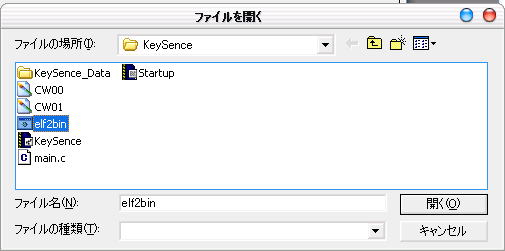 ここで「Choose」ボタンを押し、プロジェクトを保存したフォルダ内にできた「elf2bin.bat」を指定しておきます。
